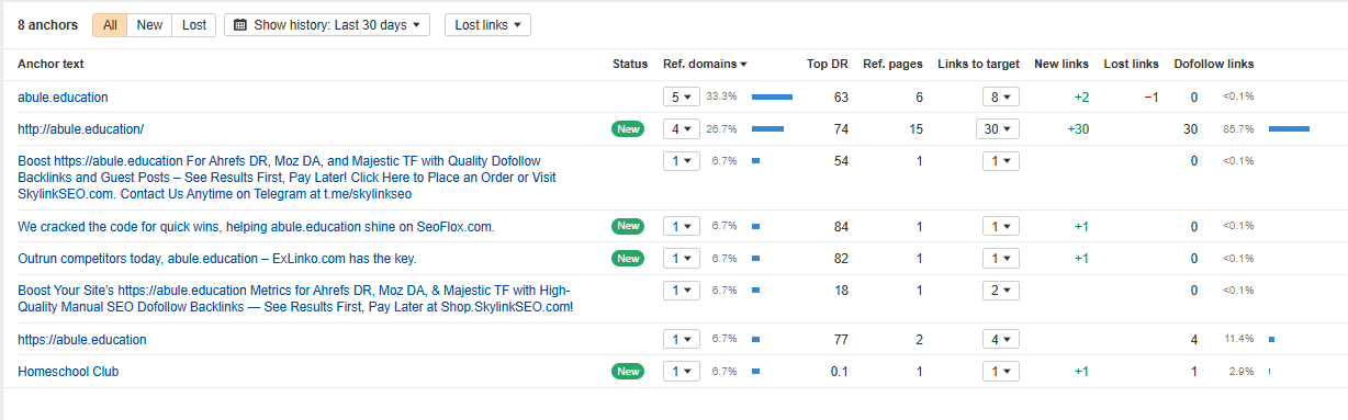 We've worked with our partners & including links to your site on various highly regarded domains. Your Domain Rating has reached 30, being way above 20+ as promised. There are currently 15 keyword based high authority domains referring to your domain, with 47 current backlinks in them leading to your site. A huge rank increase on Ahrefs since links started being indexed (4366127 rank jump)