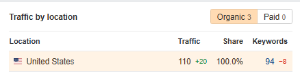 Your site is getting 100% traffic from the US, as shown below. Also, due to our work, there are 154 new and improved keywords compared to last month.