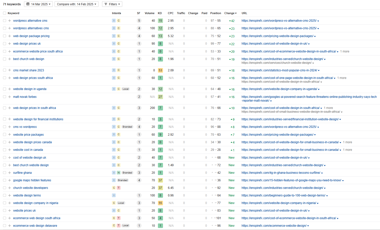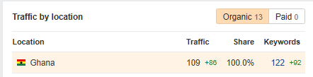 Your site is getting 100% traffic from Ghana, and there are 71 new and improved keywords compared to the last month due to our work.