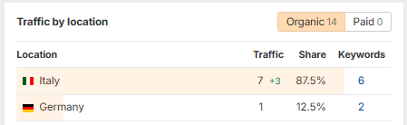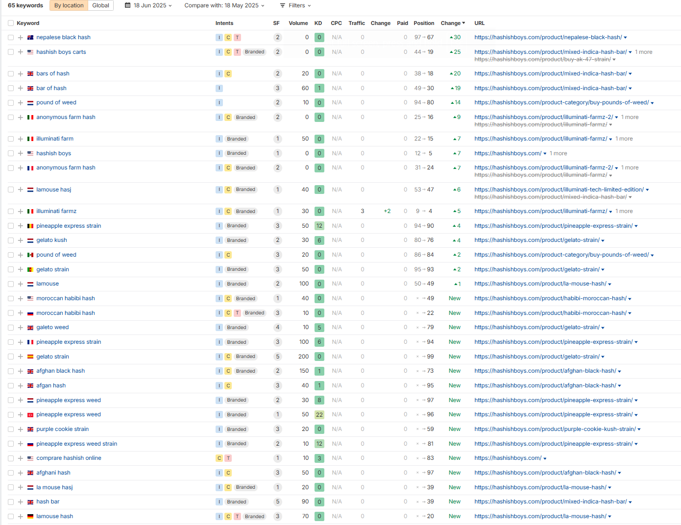 Your site is getting traffic from the top 2 countries below, and there are 65 new and improved keywords compared to last month due to our work.
