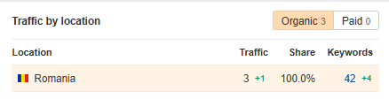 Your site is getting 100% traffic from Romania, and due to our work, there are 48 new and improved keywords compared to last month.