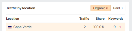 Your site is getting 100% traffic from Cape Verde, and there are 6 new and improved keywords compared to last month due to our work.