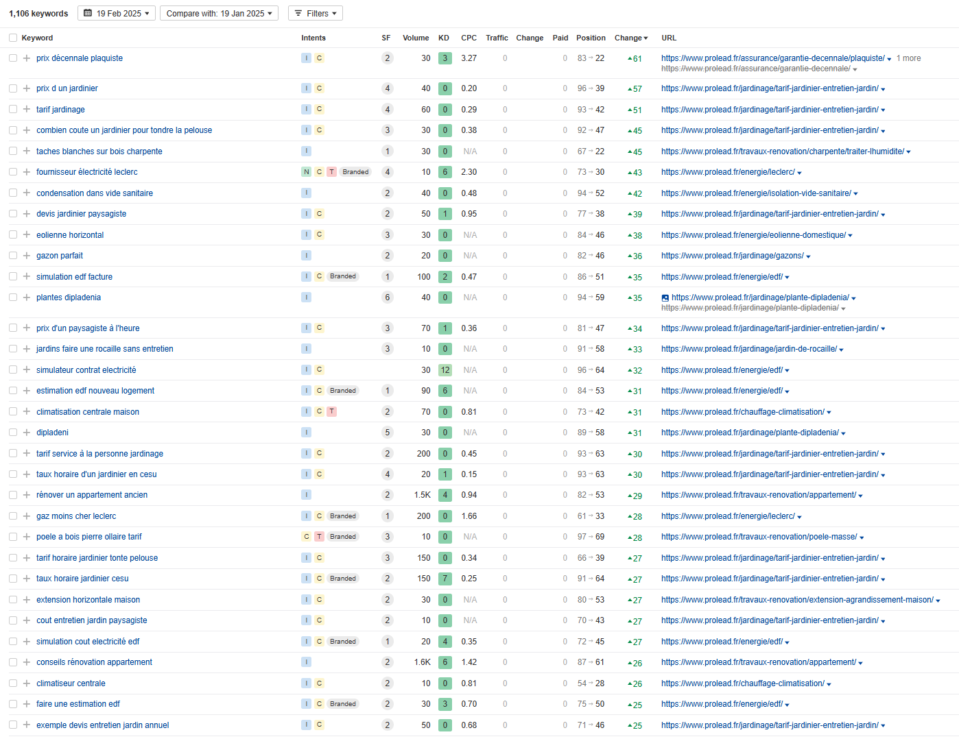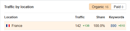 Your site is getting 100% traffic from France, and there are 1,106 new and improved keywords compared to the last month due to our work.