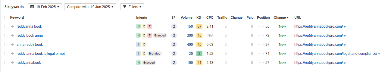 There are 5 new keywords compared to the last month due to our work.